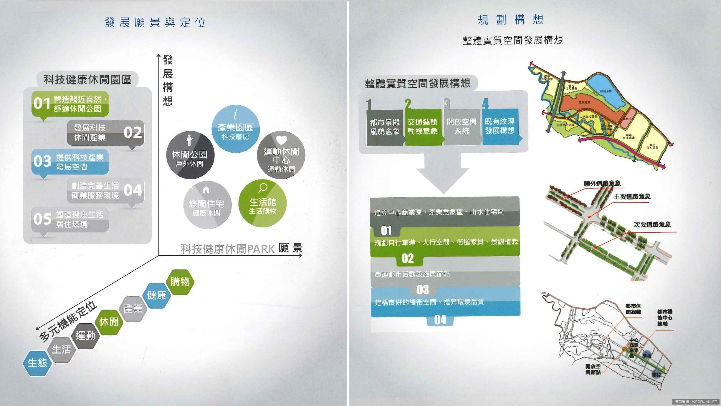 (上圖:「竹三案」規劃中心商業區、產業意象區、山水住宅區,並規劃規劃自行車道、人行空間、景觀植栽,結合薪水、居住條件、家庭安置、子女就學及照顧等綜合條件,為最新型態的工業科學園區。)