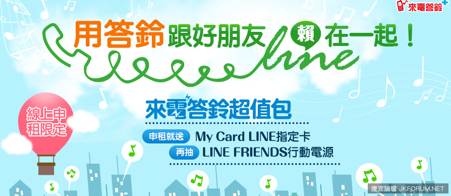 現在線上申租來電答鈴立即送LINE 240點,可以用來買貼圖、主題喔!