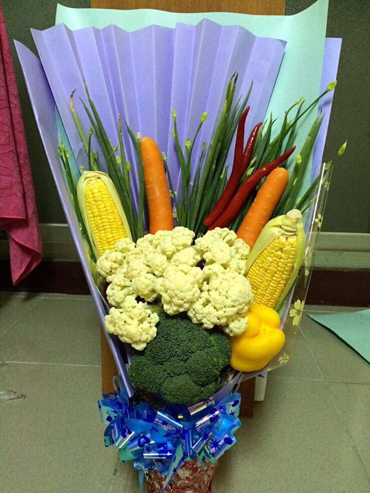 對此,網友紛紛大讚,實(食)用、這樣不錯啊!挺環保的、這花束好,絕對物超所值!大推;也有人表示,花椰菜現在很貴欸!同學對你真好、送這個很好啊!加菜耶!你不知道媽媽收到這個多高興;還有網友提到議,回家煮火鍋;更有人專業的指出,少個黑色系…不然更養生∼湊成金、木、水、火、土,五行養生花束。