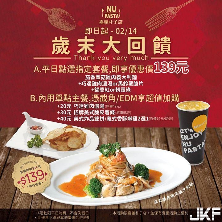 (內含茄香蕈菇雞肉義大利麵+巧達雞肉濃湯/馬鈴薯脆片+錫蘭紅/朝露綠)