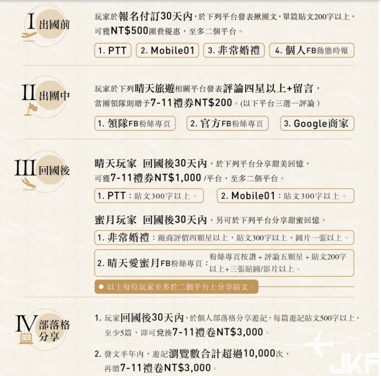 新客戶持旅遊分享券,可享每人團費優惠NT$1,000