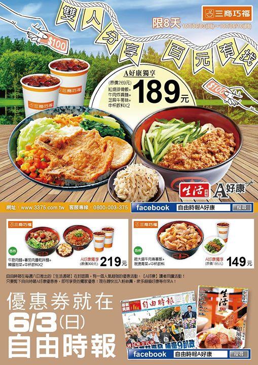 ●6/3(日)的自由時報週末生活版,有三商巧福