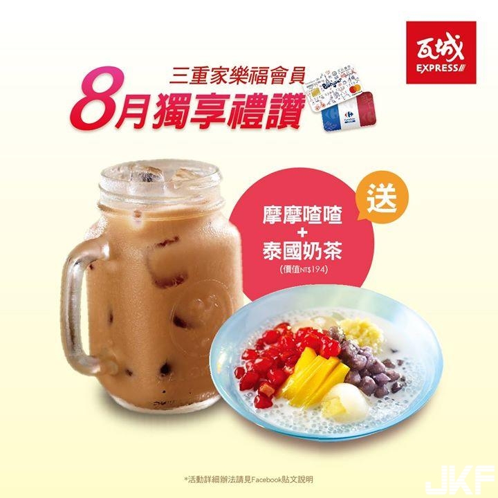 ●單點消費滿NT$1,200送【泰國奶茶+摩摩喳喳】各1份!