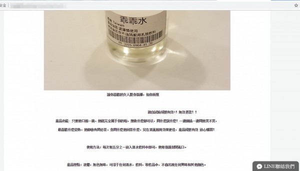 林姓男子於去年4月下旬,在購物網站發現名叫「乖乖水」的商品,網頁並說明具有「聽從誘惑、精神旅行、思想迷亂、讓她乖乖聽話、任你擺佈、事後無記憶」等效果,以2150元下單購買一瓶。