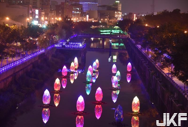 屏東綵燈節活動25日進行點燈儀式,整條萬年溪約4.7公里設置了50個燈組,相當的漂亮,從萬年公園的天橋居高臨下,可以看到鑽石般的燈光在萬年溪中閃閃發亮,輝映著遠處的城市燈光,相當的漂亮。