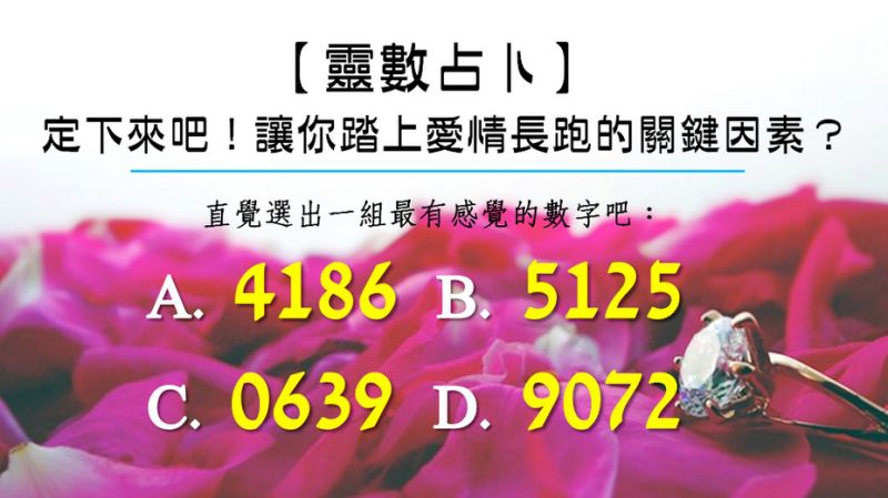 我們現在就從A-D選一組有感覺的數字,一窺讓你踏上愛情長跑的關鍵因素!