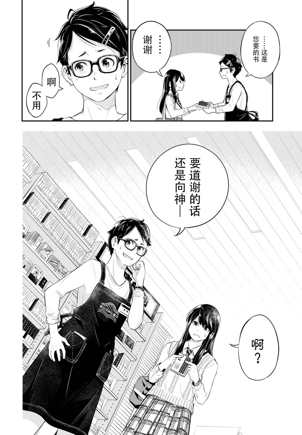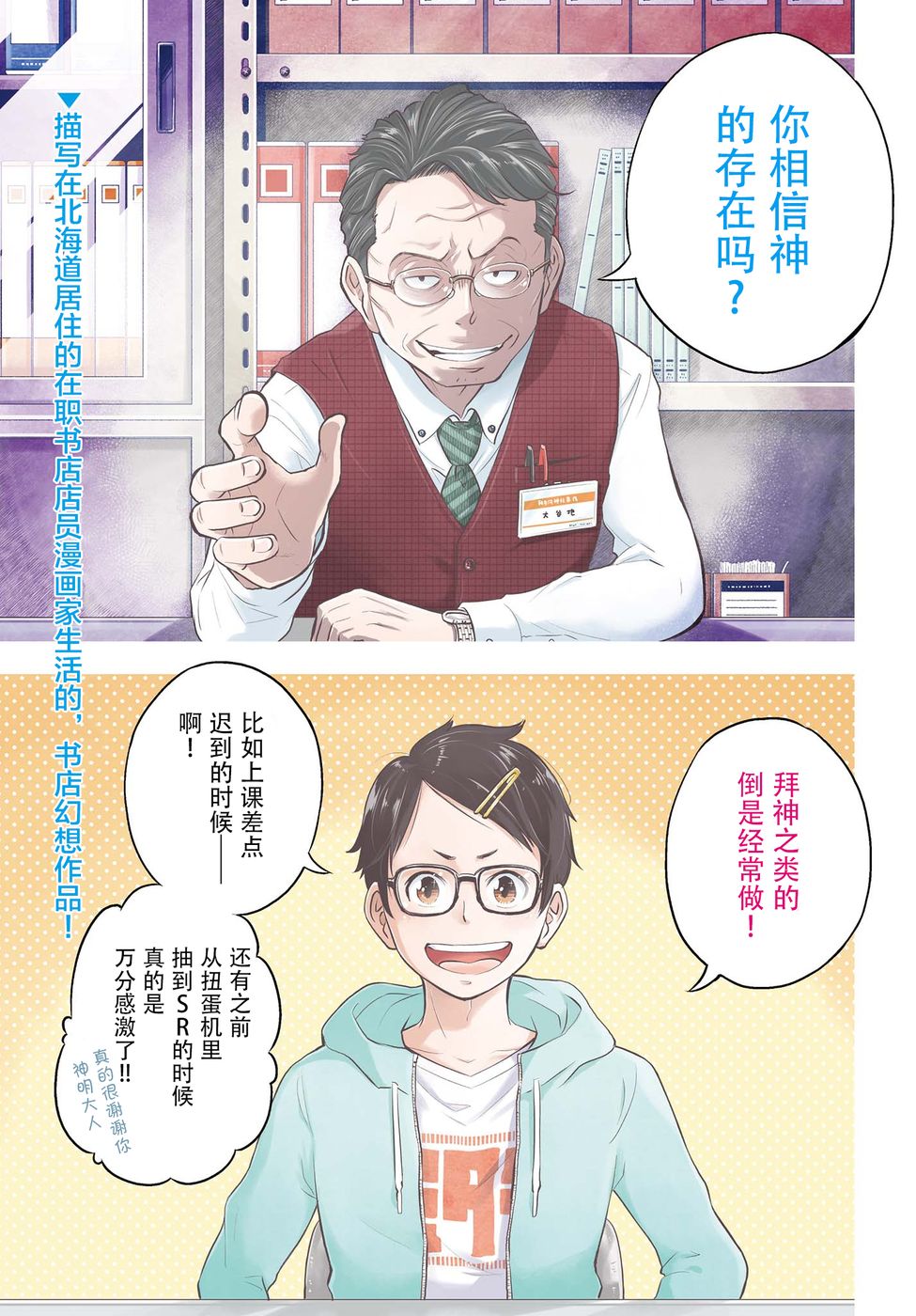 好特別的劇情,神蒞臨的書店,輕鬆無壓力的小品漫畫,感謝您分享特別的作品。