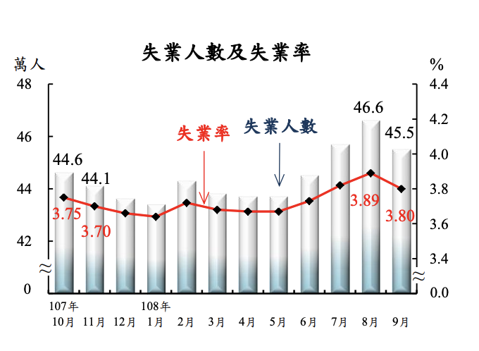 至於失業率攀三年同期新高是否與大環境因素有關,主計總處國勢普查處副處長潘寧馨表示,景氣面還是應從季節調整過的失業率來看,9月季調後失業率為3.74%,較8月微幅上升0.1個百分點,仍屬於穩定區間。