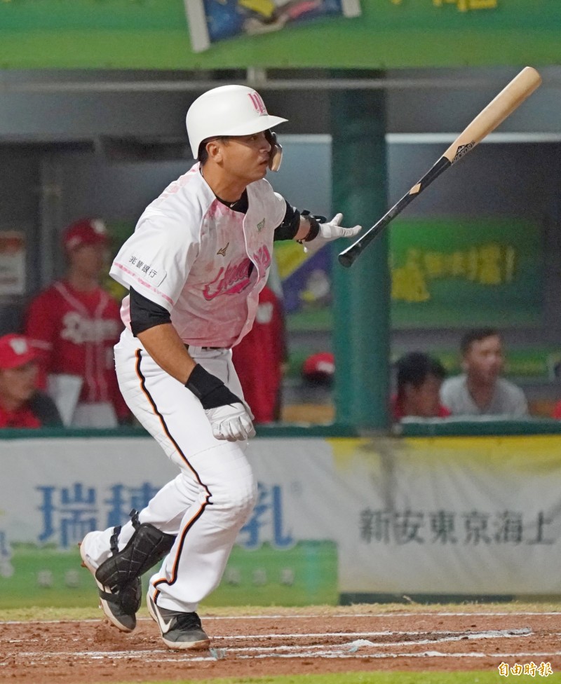 統一獅郭阜林擊出2分全壘打。(記者黃志源攝)