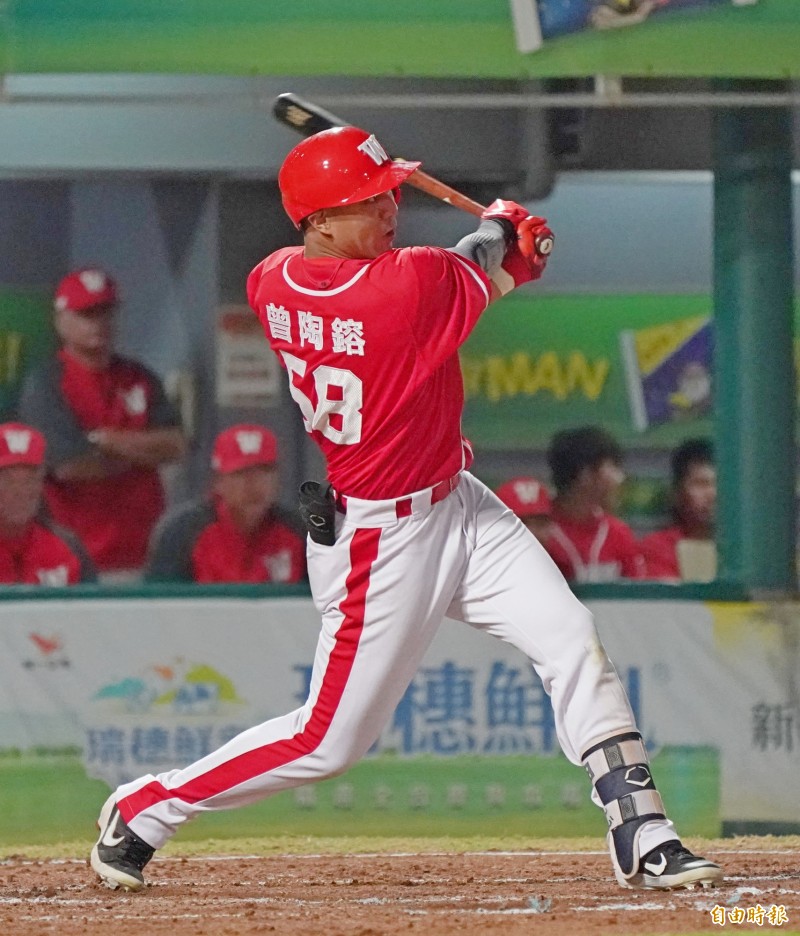 曾陶鎔擊出滿貫全壘打。(記者黃志源攝)