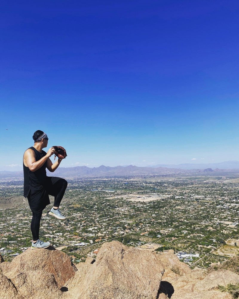 本季加盟教士隊小聯盟的胡智為,最近留在美國亞利桑那鳳凰城,他在臉書上透露,日前去爬了「駝背山( Camelback Mountain)」,「爬了一座100樓高的山,不知道上次爬山是什麼時候了,爬完這次感覺有點愛上爬山。」還曬出在高山上擺POSE練投的照片,讓網友直呼帥。