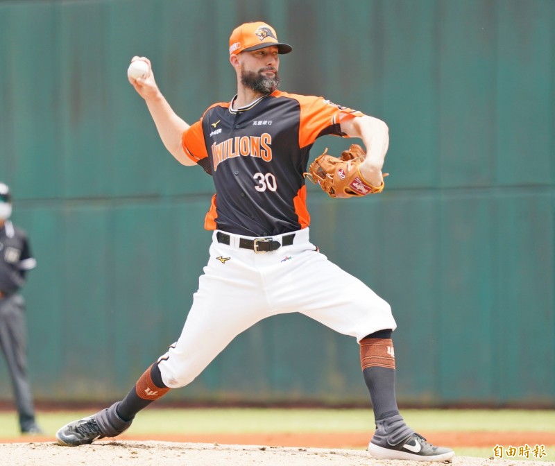統一獅洋投羅里奇今天在二軍投球。(記者黃志源攝)