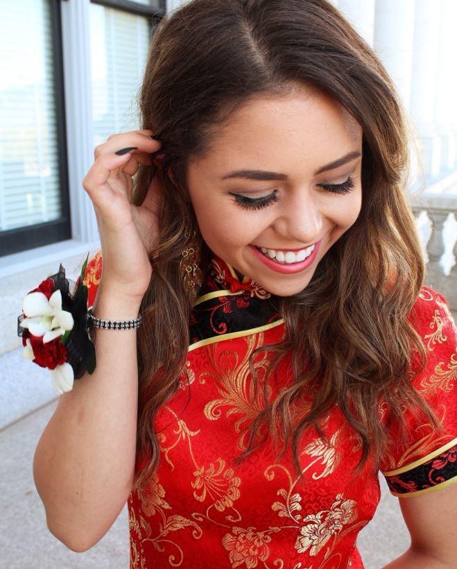 美國高中女生選旗袍出席學校舞會,卻遭網民炮轟。(Twitter「Keziah」截圖)