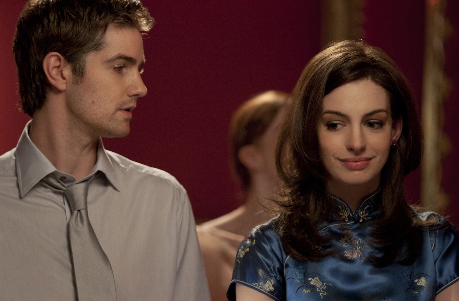 安妮夏菲維(Anne Hathaway)在《情約一天》穿上旗袍參加舊朋友婚禮。(《情約一天》劇照)