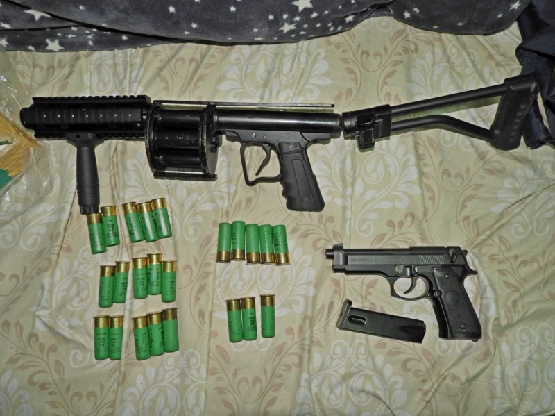 警方兵分多路,查獲周男1車5人、阮男的越南籍手下1車2人,起出甩棍、武士刀,再循線前往阮男租屋處,逮獲阮男與另名友人,並起出改造的2把長槍、1把手槍,還有改造的23發霰彈槍子彈、1發手槍子彈。