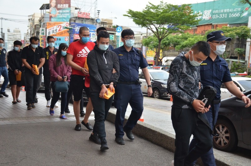 警方將阮姓男子(前左)等人送辦。(記者周敏鴻翻攝)