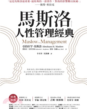 本書完整呈現馬斯洛的管理主張,說明個人差異、工作自尊、存在價值,重新詮釋組織的綜效、利潤、成本,探究優秀主管與創造力的成因,為競爭日趨激烈、變化莫測的時代,提供經營管理的成功之鑰。