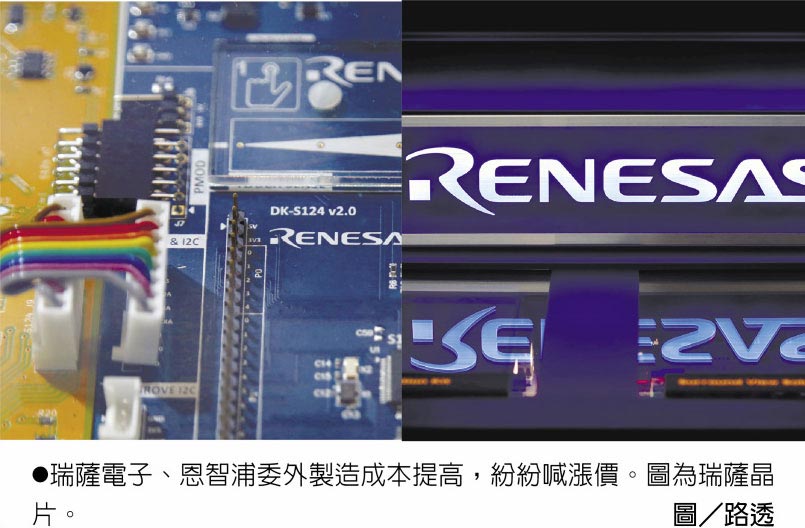 瑞薩電子、恩智浦委外製造成本提高,紛紛喊漲價。圖為瑞薩晶片。圖/路透