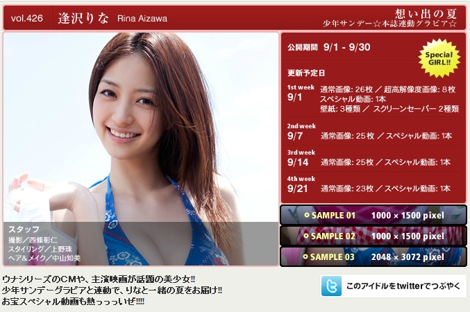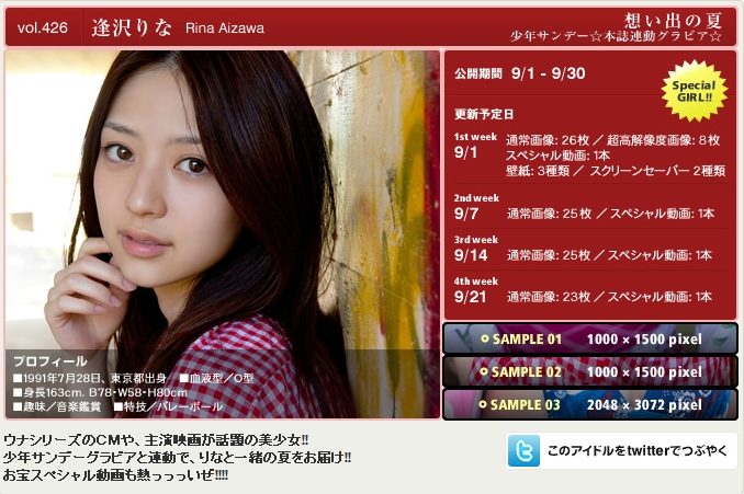 Rina Aizawa 逢沢りな - [YSVW] #426 想い出の夏 (2011.09) (99P+12P+8HQ+9WP+2SS+4MOV)