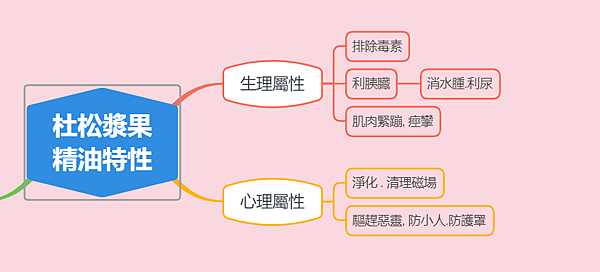 杜松子油是高能量油,想到杜松子就想到排毒、排水;對泌尿系統的排水、利尿功效很好,也可用來減肥;因為也帶消炎作用,用在痛風、風濕、關節炎、積水等融合出純淨的清新果香,給人陽光般的正面能量,淨化調理身心淨化魔法油(或者杜松子油替代)