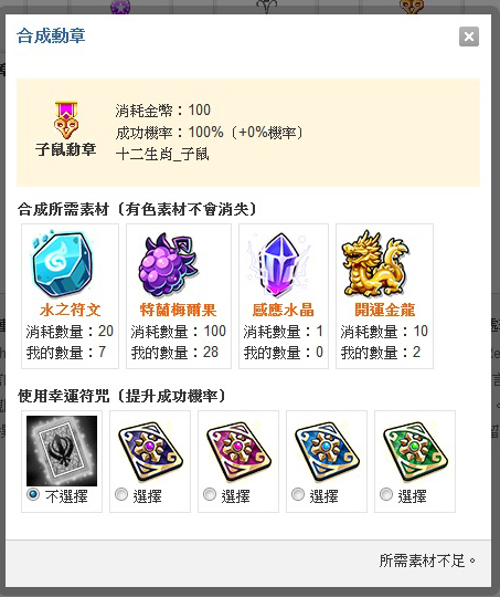 另外的發現,合成的成功率比顯示的低很多,還是我運氣太背了?