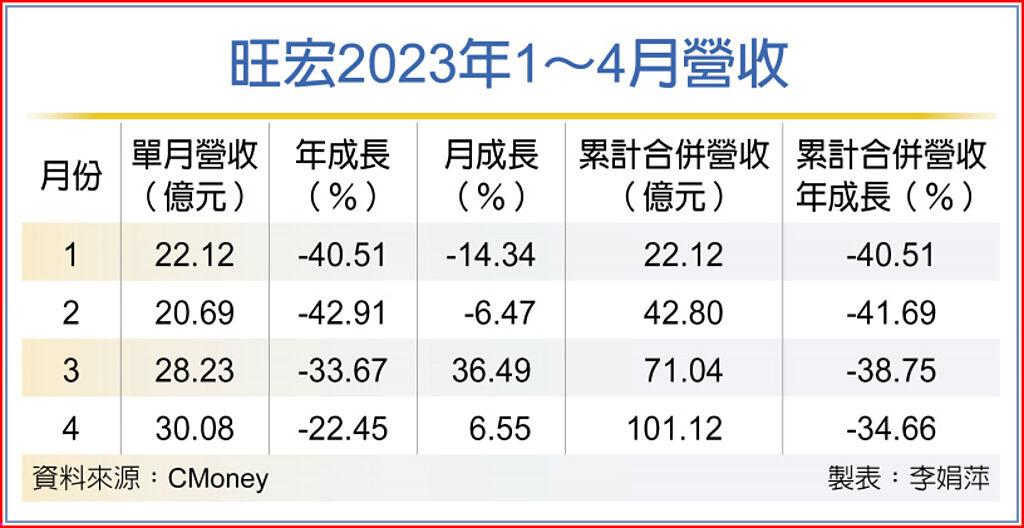 旺宏主要產品有FLASH(快閃記憶體)及ROM(唯讀記憶體),目前有一座8吋廠和一座12吋廠。受到產業淡季及客戶去化庫存影響,旺宏業績仍呈年減現象,累計前四月合併營收101.12億元,較去年同期154.77億元減少34.7%。