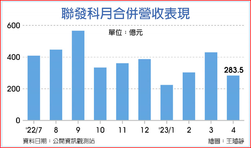 聯發科4月合併營收283.5億元,再度失守300億元關卡,且較上月減少34%;累計前四月合併營收1,240億元,對比去年同期1,953億元大減36.5%。聯發科第一季單季營收957億元,滑落至千億元以下,手機市況依舊冷淡,4月營收再度低於300億元,顯示營運仍處谷底沈澱階段。