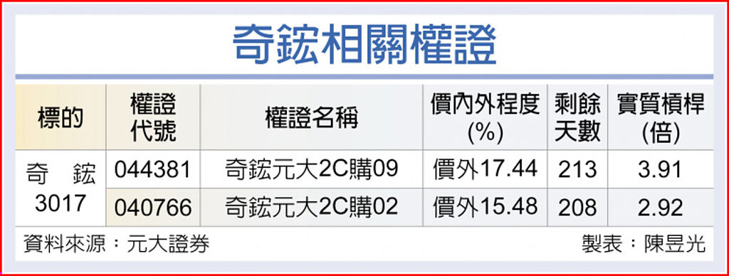 除下半年為出貨旺季外,奇鋐在伺服器新平台可望放量,及H100採用搭載3D VC的散熱模組,產品平均售價較傳統熱管高出約1倍以上,再加上部分伺服器下半年將轉為做AI伺服器背景上,增添營運動能。 |