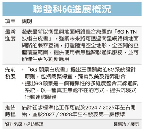 聯發科曾於2022年1月發表「6G 願景白皮書」,透過關鍵技術趨勢、工程可行性、標準化時程等三方面來勾勒該公司的6G 願景,並提出三個關鍵的6G系統設計原則,包括簡繁得宜、臻善致美及跨界融合。