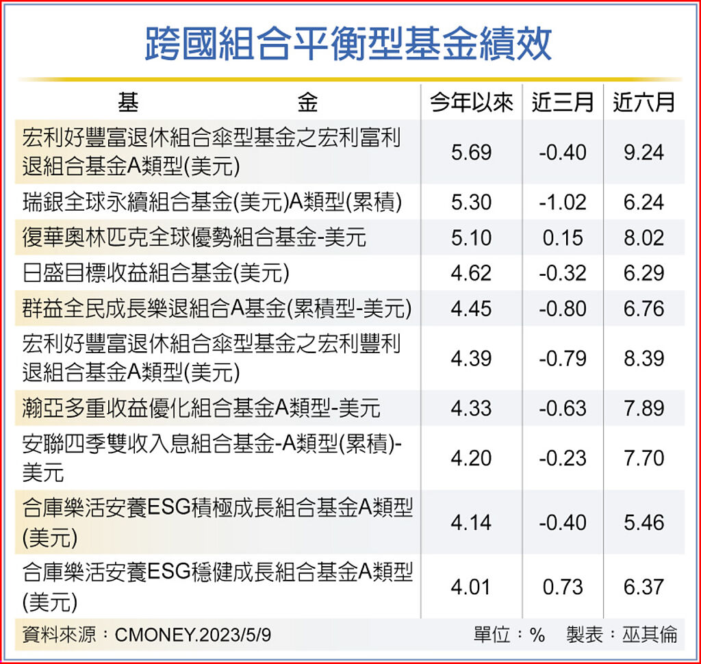 短線美國債務上限問題,若兩黨協商不順恐造成6月、7月份市場震盪,建議優先布局全球組合平衡基金。股票型基金方面,看好科技、ESG題材。債券基金看好體質相對穩健的優先擔保債、墮落天使債券基金。