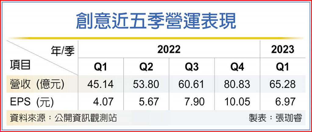 創意強調,今年NRE進行中的案件大部分都屬AI領域,前十大案件中5至6項都是AI相關,多數都是N5/N7製程,未來如果順利進入量產也都有機會挹注營收;創意第一季營收65.29億元,相較其他半導體同業,繳出45%的年成長,單季每股稅後純益6.97元,較去年同期4.01元增加逾70%,展望第二季預估營收規模能繳出與第一季持平成績。