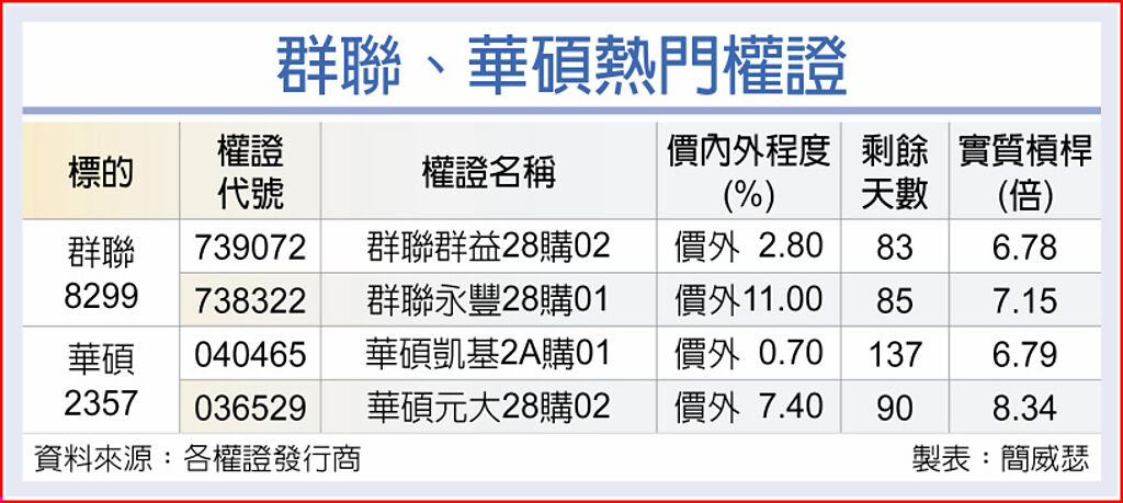 台股改寫2023年高點,權值股、高價股百花齊放,法人也點名具有轉機的電子高價股有跟進機會,帶動股價有所表現,中信投顧看好群聯(8299)轉投資虧損影響減少,升評「增加持股」;金控旗下投顧則認為華碩(2357)將提前由虧轉盈,升評「買進」。