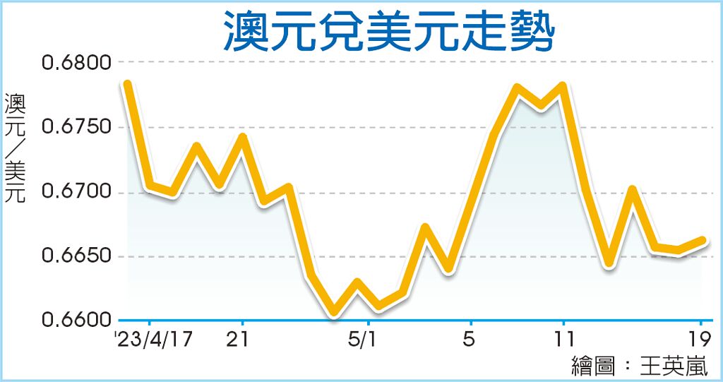 兌美元匯率19日盤中升值0.6%報0.666美元,從18日的三周低點反彈。若終場維持此水準,本周累漲0.3%,扭轉周線在上周收黑的走勢。但市場認為澳元仍承受許多壓力,像Fed釋出鷹派言論支撐美元,澳洲4月失業率高於預期可能削弱澳洲央行的鷹派立場而不利澳元走勢。 |