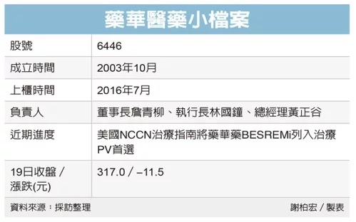藥華藥(6446)昨(21)日宣布,美國國家綜合癌症資訊網NCCN(National Comprehensive Cancer Network)在最新的治療指南中,強力推薦藥華藥的新藥BESREMi(P1101)在治療成人真性紅血球增多症(PV)上,患者無論高、低風險都可將BESREMi均列為治療首選。