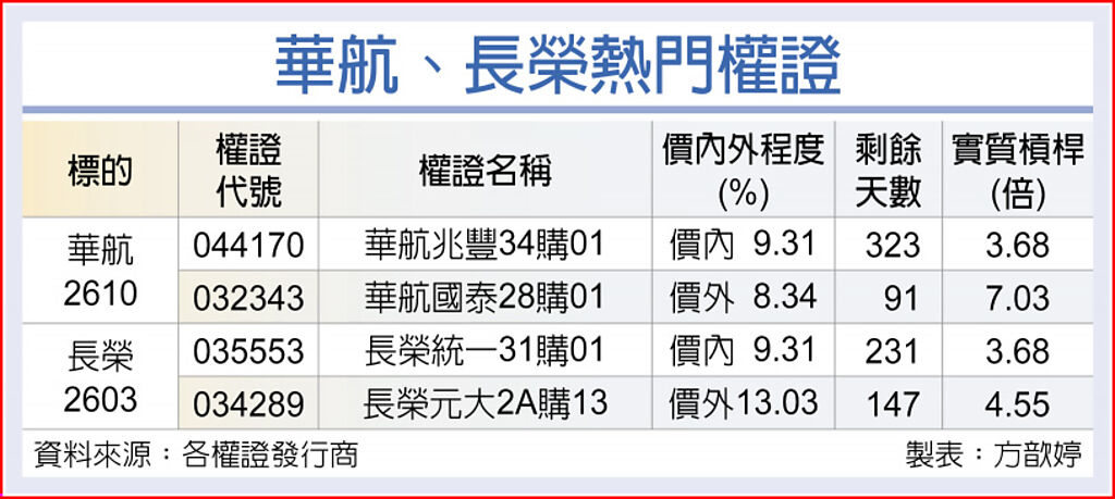 台股22日陷平盤震盪,不過,在中國恢復台灣團客旅遊消息持續發酵下,航運類股指數居上市類股漲幅之冠,其中,華航(2610)股價上漲2.75%、以20.55元收復年線20.38元;貨櫃三雄之一的長榮(2603)成交量日增4成、破2.1萬張,股價收漲1.99%、在153.5元,兩檔相關權證沾光,行情升溫。