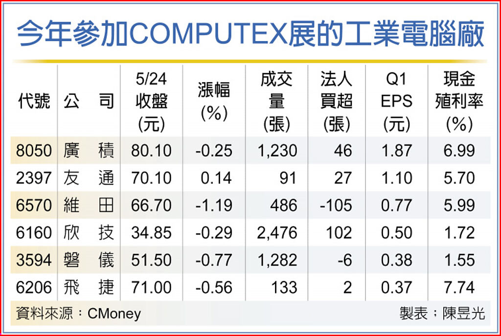 維田看好各國工業自動化、交通、新能源產業、船舶、醫療產業等需求強勁,並持續針對自動化工具機等人機介面系統推出相關應用產品,預計COMPUTEX展出應用於充電樁、醫療產業等工業電腦新品。