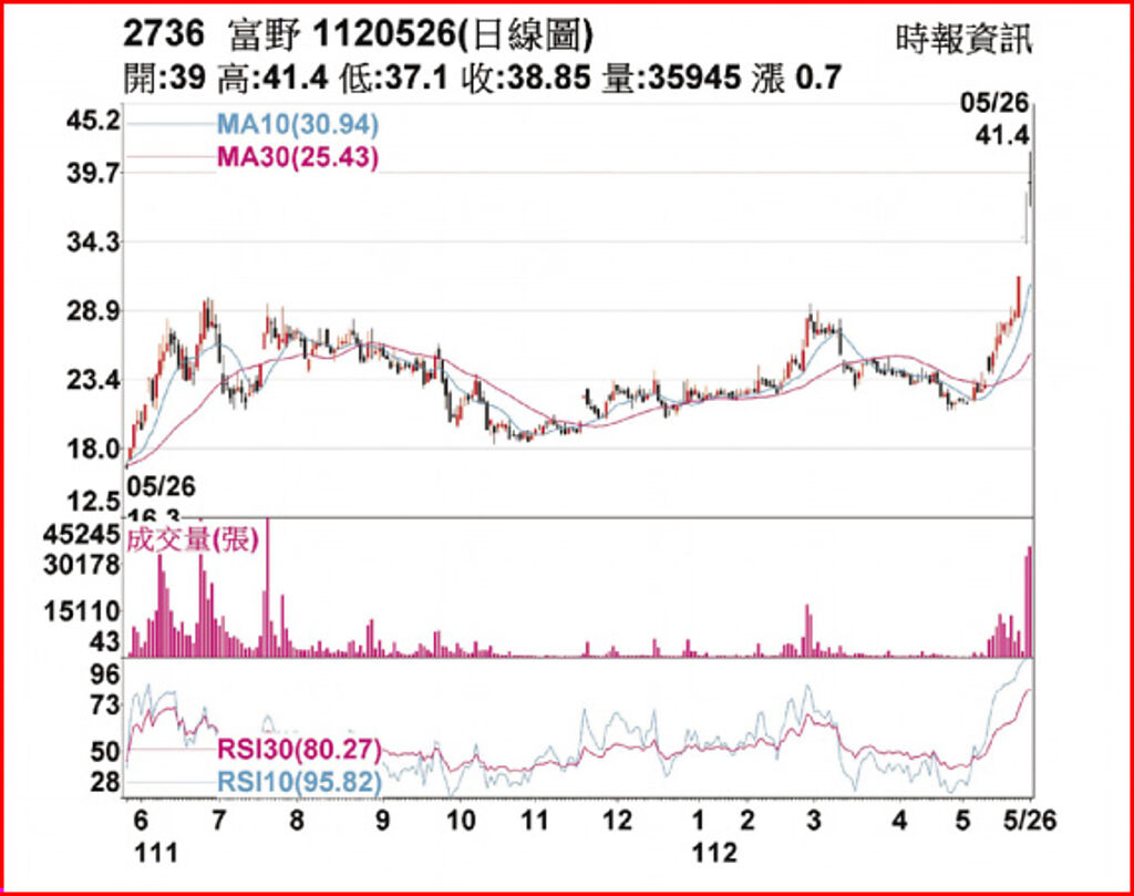 富野(2736)26日在多空交戰下劇烈震盪,一度下跌2.75%後翻紅飆漲8.52%至41.4元,尾盤遭逢賣壓出籠急跌翻黑,終場拉尾盤上漲1.83%、收38.85元,創2016年4月底來逾七年高,成交量達3萬5,919萬張,創去年7月中來大量。三大法人翻空調節、合計賣超達2,072張。