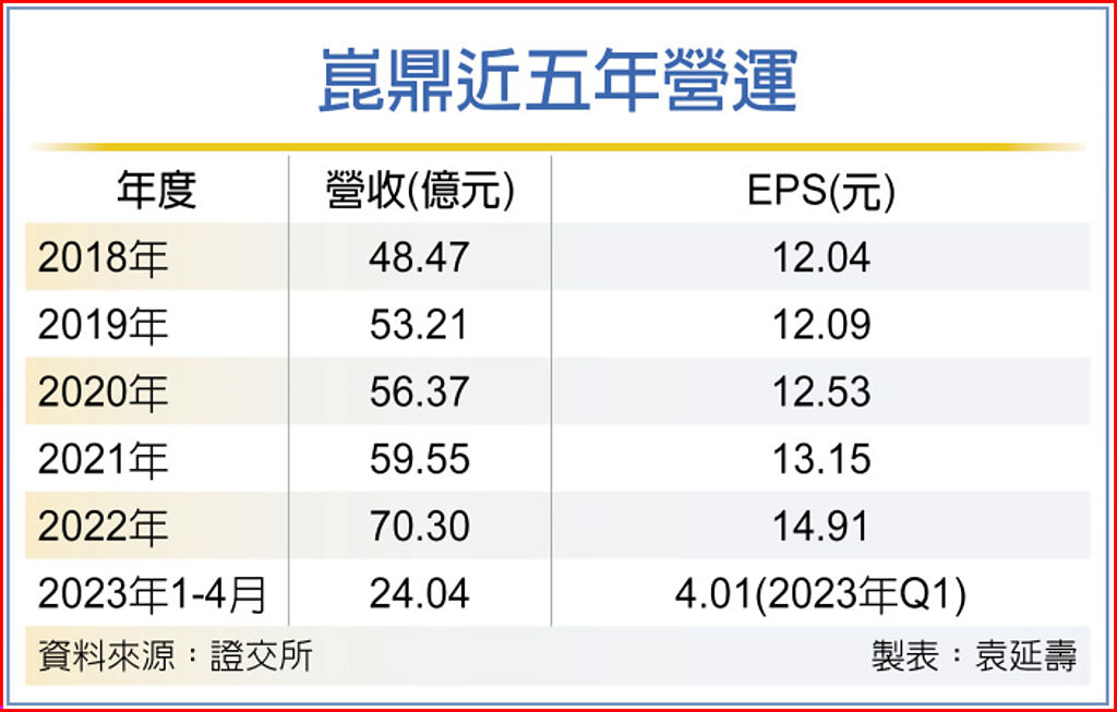 崑鼎今年首季財報顯示,營益率22.17%,已比去年同期提升0.36個百分點。