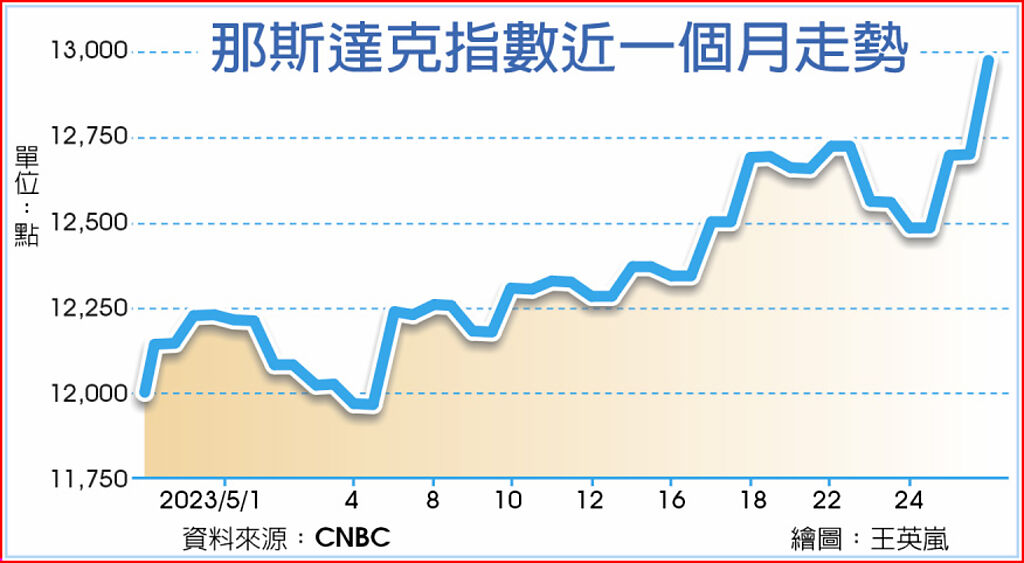 美國債限協商達成協議在望,加上AI題材持續狂燒帶動,26日美股四大指數齊飆。道瓊指數終止連五黑,那斯達克指數與標普指數均創去年8月來收盤新高,那指更繳出周線連五紅的表現。