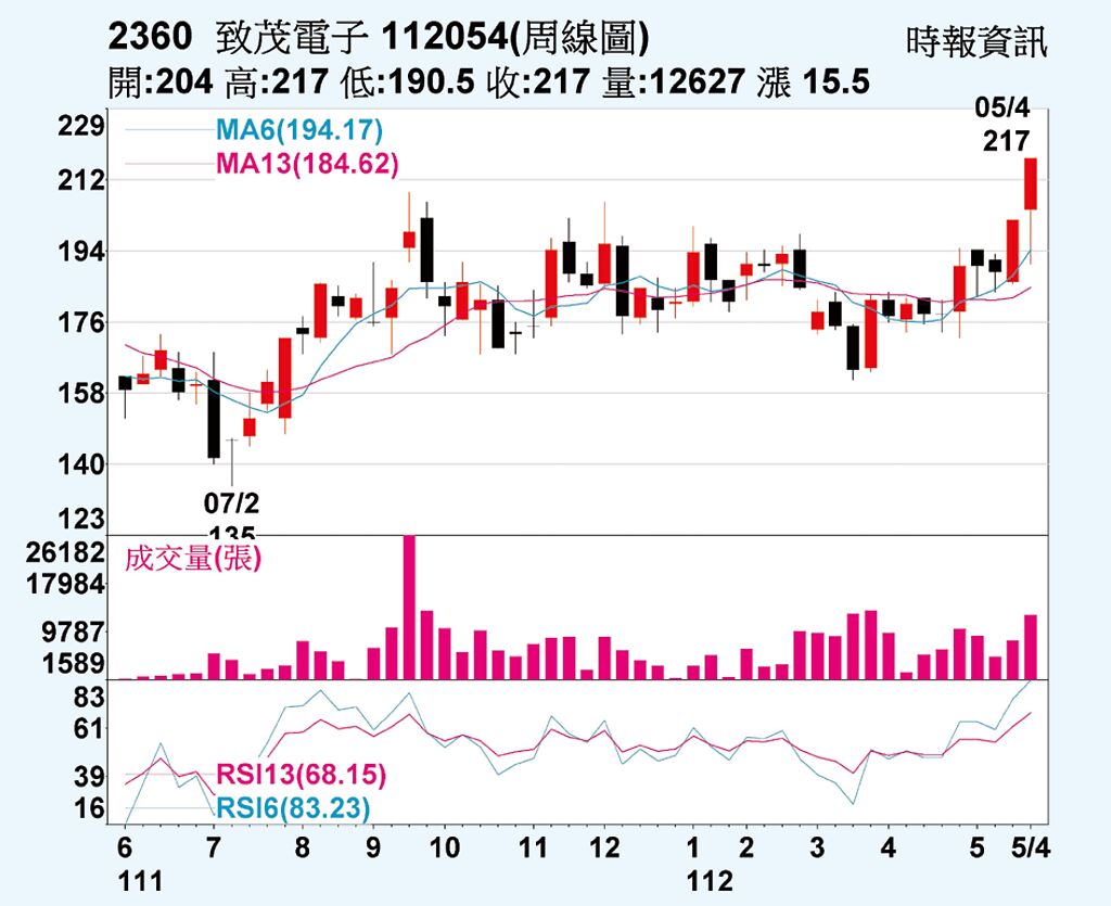 致茂(2360)因應用於HPC(高效能運算)設備需求維持強勁,加之台積電大漲激勵相關半導體設備股,致茂26日獲買盤追捧,股價亮燈漲停創下波段新高紀錄,終場以217元作收,不僅亮麗漲停收市,漲停排隊買單仍逾6,000張,單日拉出長紅K之下,致茂單周勁揚14.21%。