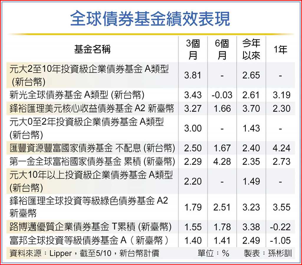 投信法人建議,現在分批加碼高品質投資等級債,或聚焦多元券種的全球債券基金,掌握難得的低接契機。
