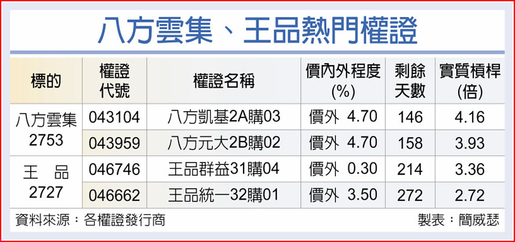 防疫管制於2022年第四季鬆綁後,台灣餐飲業者整體市值已成長46%,凱基投顧看好,基於內需消費繼續升溫等四大理由,漲勢將延續至下半年,初次將八方雲集(2753)、王品(2727)納入研究範圍,給予「買進」投資評等,推測合理股價分別是416與214元。