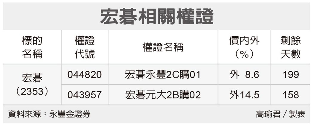 投資人可挑選價外15%以內中長天期權證,如宏碁永豐2C購01(044820)、宏碁元大2B購02(043957)。(永豐金證券提供) |