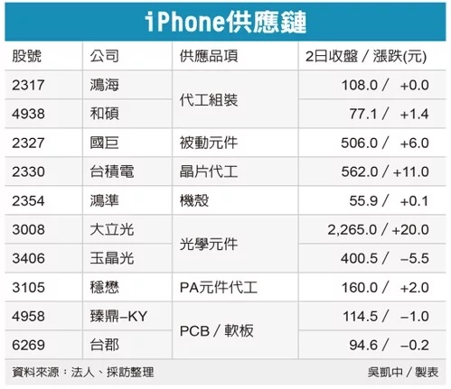 非蘋智慧手機市況受制通膨等因素干擾,目前仍相對低迷,市場認為iPhone 15系列新機因主攻高階市場,較不受影響,預期初期備貨量可維持去年的8,500萬支至9,000萬支,隨著鴻海集團開始量產新機,法人看好蘋概股可望接棒AI族群,成為引領台股持續上攻的關鍵助力。