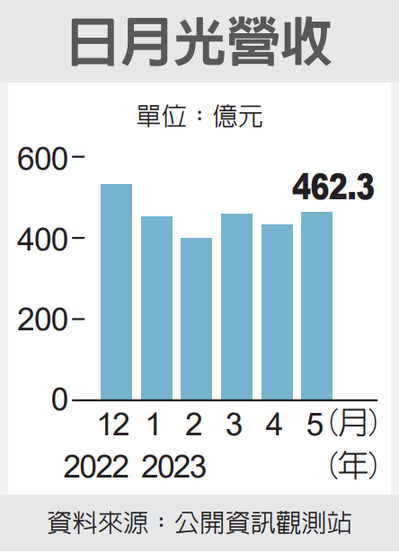 全球封測龍頭日月光投控(3711)昨(9)日公告今年5月營收462.38億元,月增6.75%,為今年以來最佳、同期次高。