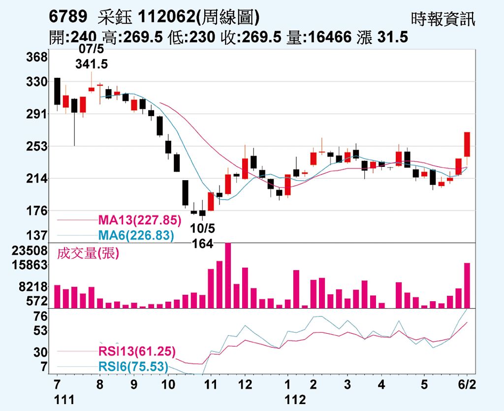 采鈺(6789)傳出台積熊本CIS後段訂單因索尼產能嚴重不足,罕見委由采鈺承接,量能之大、前所未見,牽動采鈺9日股價在午盤過後直攻漲停,收269.5元,收盤價創八個月以來新高,成交量7,082張,亦為今年以來最大量。