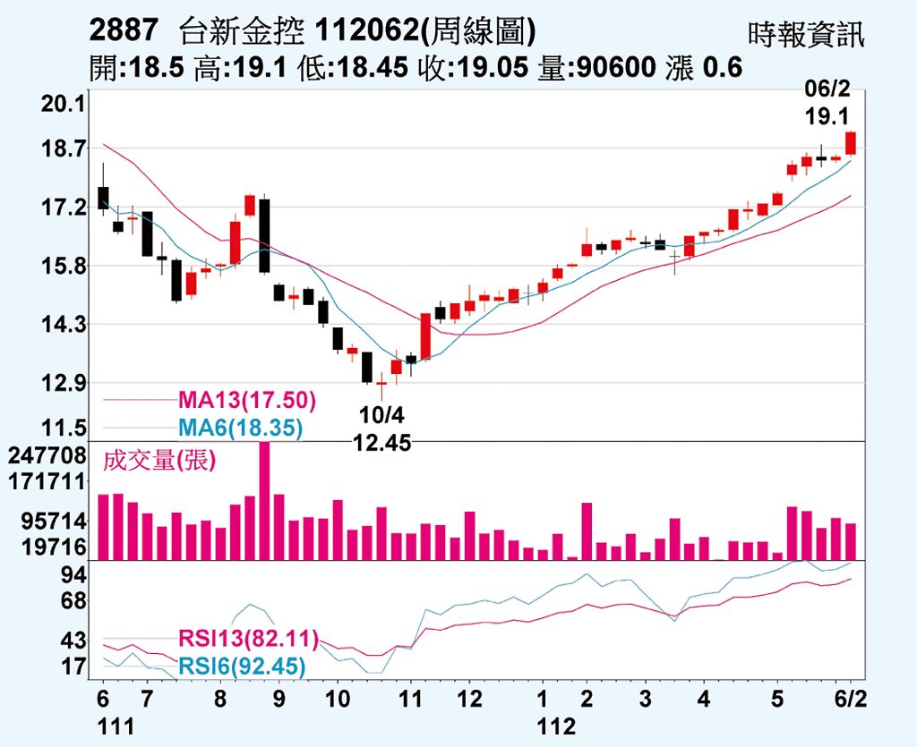 台新金9日以19.05元作收,上漲0.2元,漲幅1.06%,周漲幅3.25%。近五日三大法人合計買超29,078張,外資周買超29,240張,投信周小賣超447張、自營商周買超285張。台新金今年獲利動能穩定成長,股價預期維持向上趨勢。 |