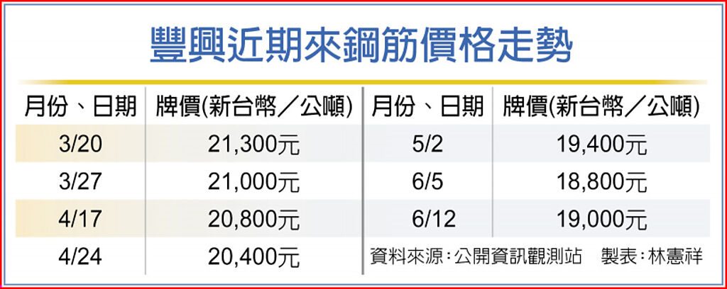 對於這次盤價走勢,豐興發言人莊文哲表示,主要是國內外廢鋼原料反彈,且大陸鋼價上揚,加上廠商進場增補鋼筋,估計全台回補量超過10萬公噸,豐興公司決定適度調漲廢鋼和鋼筋價格。