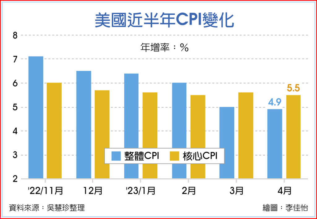數據供應商FactSet調查預估,美國5月消費者物價指數(CPI)年增率,可望從4月的4.9%再放緩到4.2%,但仍是Fed2%目標的2倍有餘。