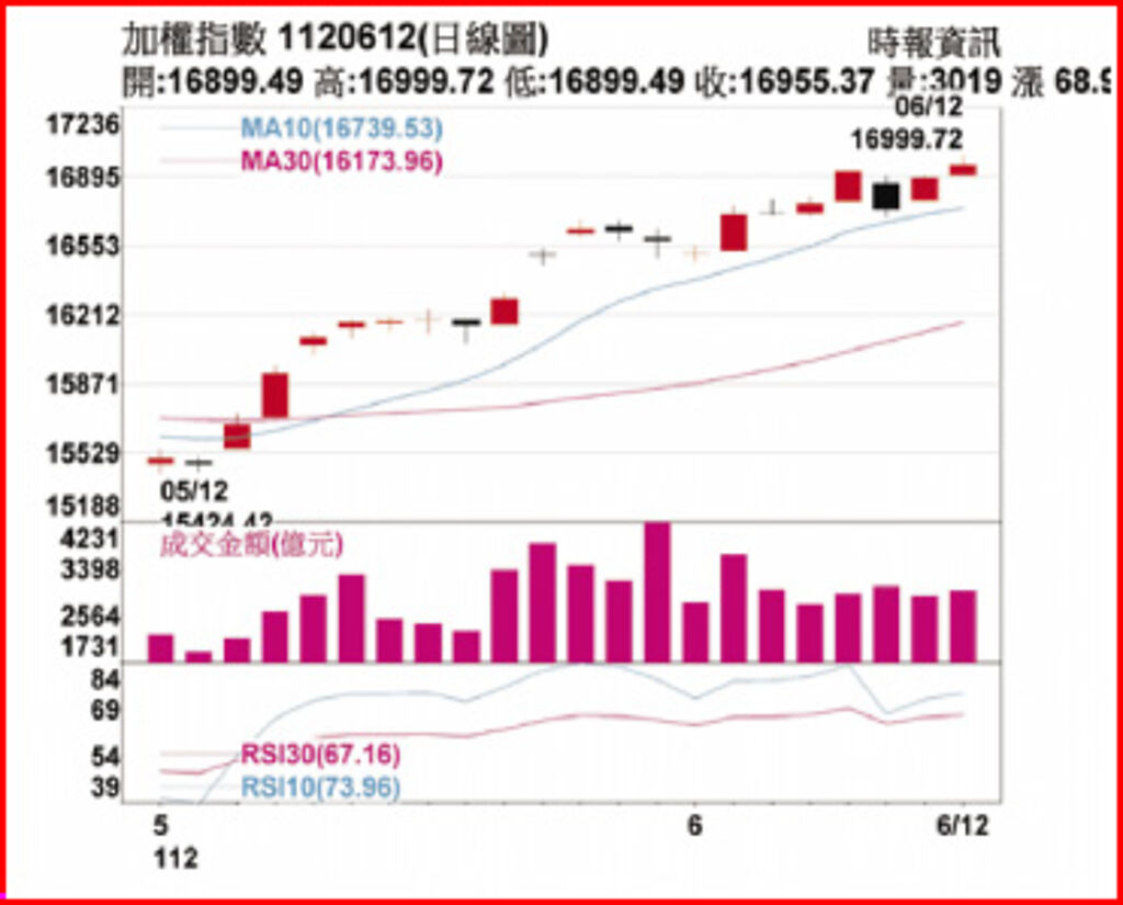 股市經過一波大漲後,估計6月的盤勢震盪整理,但季線「萬六」整數關卡應有強力支撐。預估震盪整理後,下半年將啟動多頭行情,而AI仍將成為驅動市場的重要引擎。考量電子業庫存調整已近尾聲、下半年將步入產業旺季,加上技術面短、中、長期均線向上翻揚,有望下半年呈現驚驚漲格局。